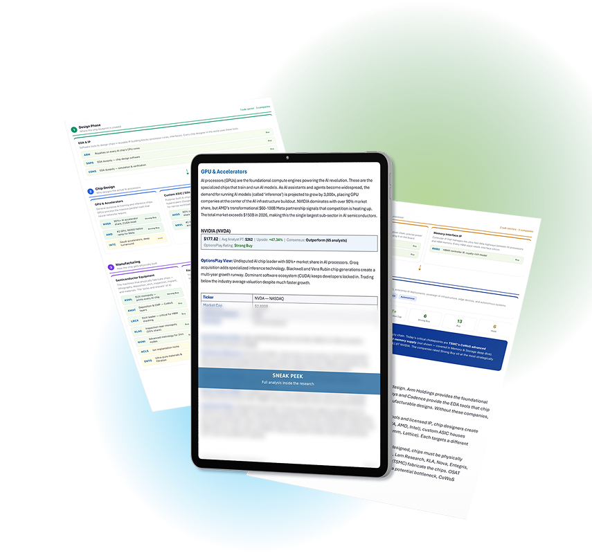 We don’t slap a “Buy” label on a stock and move on. Each industry deep dive maps the entire ecosystem — from the companies designing chips to the ones testing them. Including the smaller names your broker has never heard of.